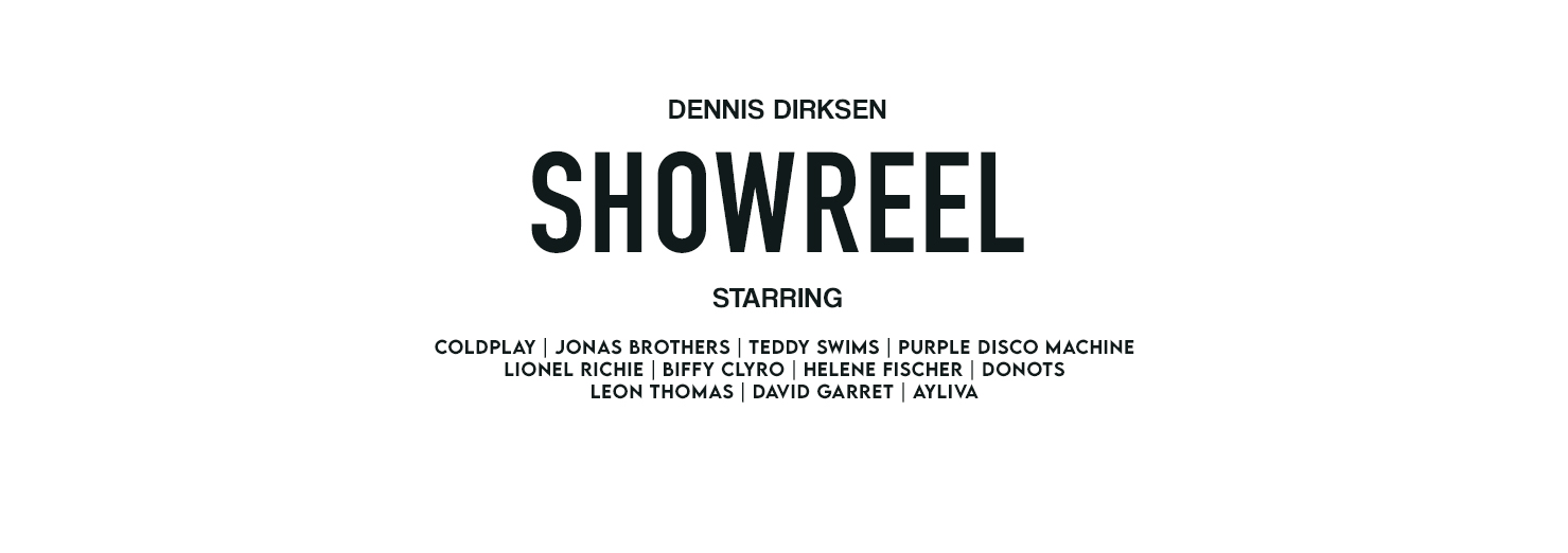 Watch Showreel Visa Vie BIFFY CLYRO GEORGE R.R MARTIN UDO LINDENBERG JULIE DELPY CHROMEO BELA B FELSENHEIMER DAVID A. STEWART (Eurythmics) DONOTS The Get Up Kids JOSÉ GONZÁLEZ BENJAMIN VON STUCKRAD-BARRE LENA URZENDOWSKY PURPLE DISCO MACHINE JULIETTE LEWIS Niels Frevert TAYLA PARX EROS RAMAZZOTTI STEPHEN MCMILLAN ANDREA SAWATZKI NANA MOUSKOURI GLEN HANSARD RICHARD E. GRANT MATTHIAS SCHWEIGHÖFER FLORIAN DAVID FITZ BANKS HEINZ STRUNK KALENDER KIEFER SUTHERLAND MORITZ NEUMEIER BELLA DAYNE CHARLES ESTEN CLARE BOWEN AYLIN TEZEL TOKIO HOTEL LYKKE LI PURPLE DISCO MACHINE x NOTHING BUT THIEVES Yann Tiersen JAMES BAY ALVARO SOLER JAMES BLUNT KATIE MELUA HEINZ STRUNK MANDO DIAO COLDPLAY BERQ DERMOT KENNEDY PARCELS BIRDY CARLOTTA JOSEFINE PAHL JULIANE BEHNEKE LANA DEL RAY RAFFAELA LEA ZOE WEES LAUV INES ANIOLI MADSEN Mord auf Ex RHODES ALLI NEUMANN HEINZ STRUNK MANUEL MÖGLICH ENNO BUNGER LAURA LARSSON & SIMON DÖMER JAN DELAY SIEGFRIED & JOY BØRNS ANNA ZIMT & PAULA AMY SHARK TONBANDGERÄT SELIG ANNE FLECK KLAN
